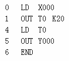 T0是經(jīng)100ms(0.1S)為單位的定時(shí)器。將20指定為常數(shù),則0.1SX20=2S的定時(shí)器工作。